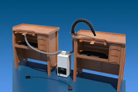 Compact 2-station bench collector for dust, fume & solder. Used in engraving & repair shops