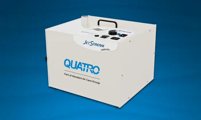 Congratulations! You are now owner of a Quatro JetStream Widebody dust collector; an efficient unit engineered to capture and contain airborne particulate generated by your application. As soon as the unit starts to operate, you will notice an improvement in air quality.