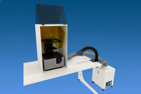 photopolymer resins. Includes sturdy containment cabinet for desktop printers and a flex mobile arm to efficiently